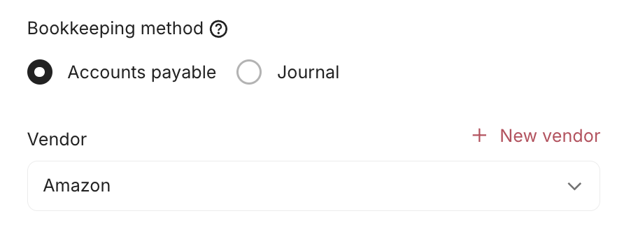 Så snart du har opsat og aktiveret Leverandørtagging, kan du i en udgiftsoplysning vælge en leverandør under Bogføringsmetode. Men husk, at leverandør kun er obligatorisk for Leverandørgæld.