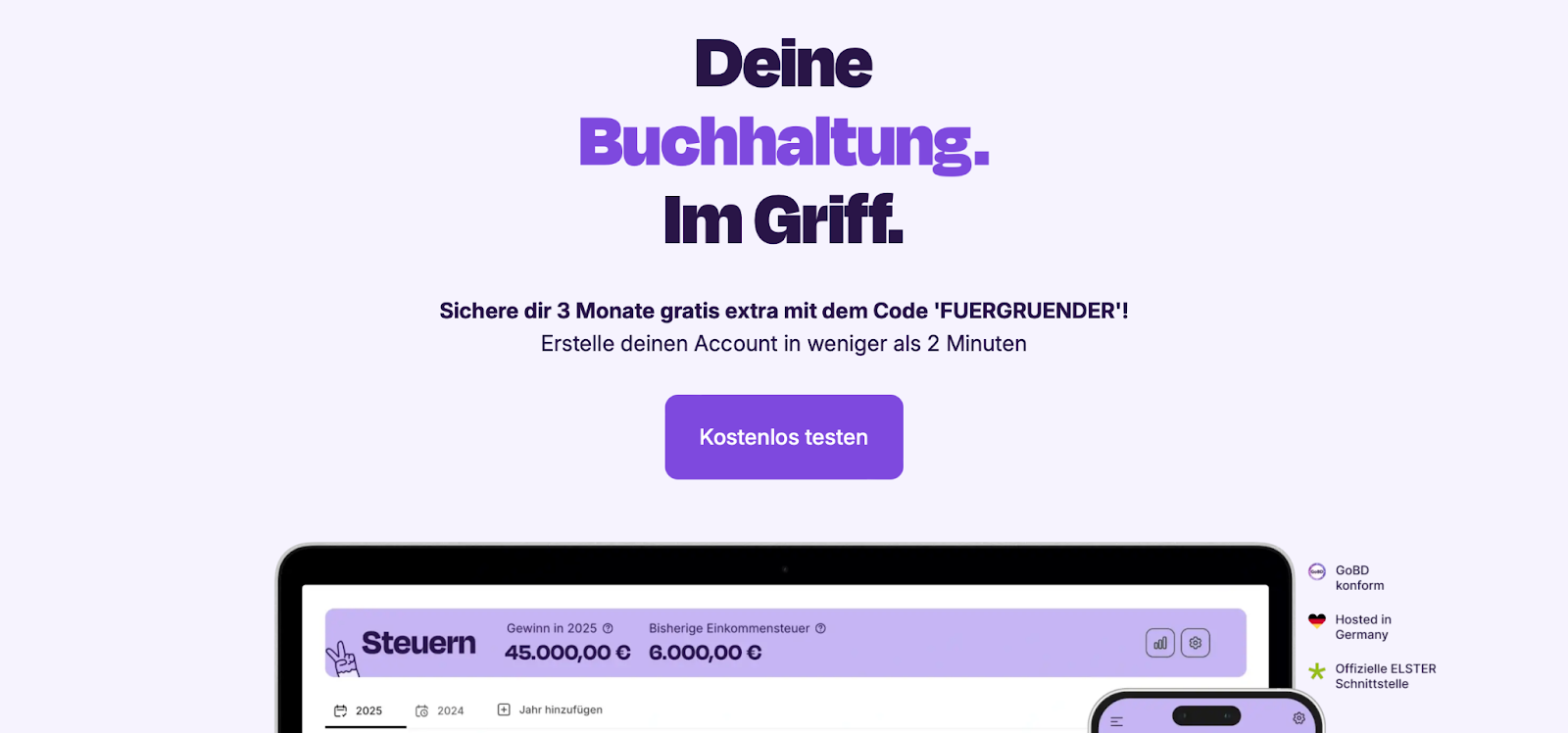 - Hosting in Deutschland, SSL-Verschlüsselung und GoBD-Konformität sorgen für Sicherheit