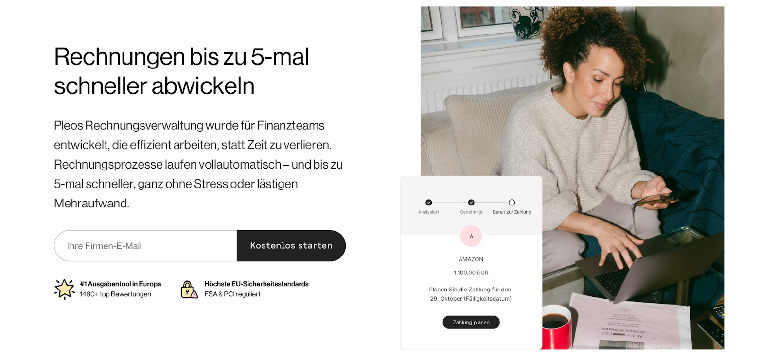 Gehen Sie den Umstieg mit Bedacht an und wählen Sie den Anbieter, der Ihr Unternehmen bestmöglich unterstützen kann. Pleo Eingangsrechnungen hilft Ihnen dabei, Ihren Rechnungsprozess zu digitalisieren und Ihr Unternehmen bestmöglich auf die automatisierte Buchhaltung vorzubereiten.