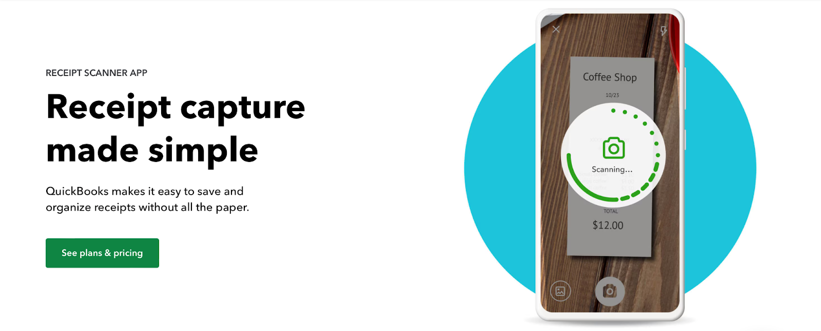 Als Teil der Business Accounting App bietet Quickbooks seinen eigenen Belegscanner an. Diese umfasst sämtliche Funktionen einer guten Belegscanner App, wie z. B. OCR-Technologie und eine automatische Kategorisierung, und ist bereits ab unter 10€ pro Monat erhältlich.