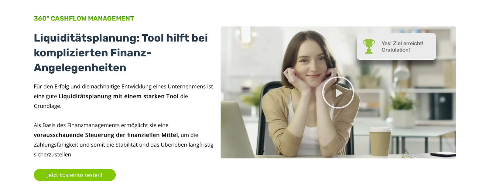 - Mehr Unternehmenserfolg: Der gezielte Einsatz von Finanzplanungssoftware erlaubt Unternehmen, auch in Krisensituationen liquide zu bleiben, ihren Betrieb zu schützen und dann Chancen wahrzunehmen, wenn andere Unternehmen zurückstecken müssen. Das schafft einen Wettbewerbsvorteil.