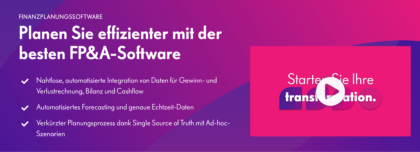 Suchen Sie nach einer grundlegenden Lösung für die Finanzplanung und -analyse oder einer Erweiterung bestehender Software mit Szenarienplanung und -analyse? Oder benötigen Sie doch eher eine spezialisierte Lösung für die Verwaltung, Automatisierung und Planung Ihres Cashflows?