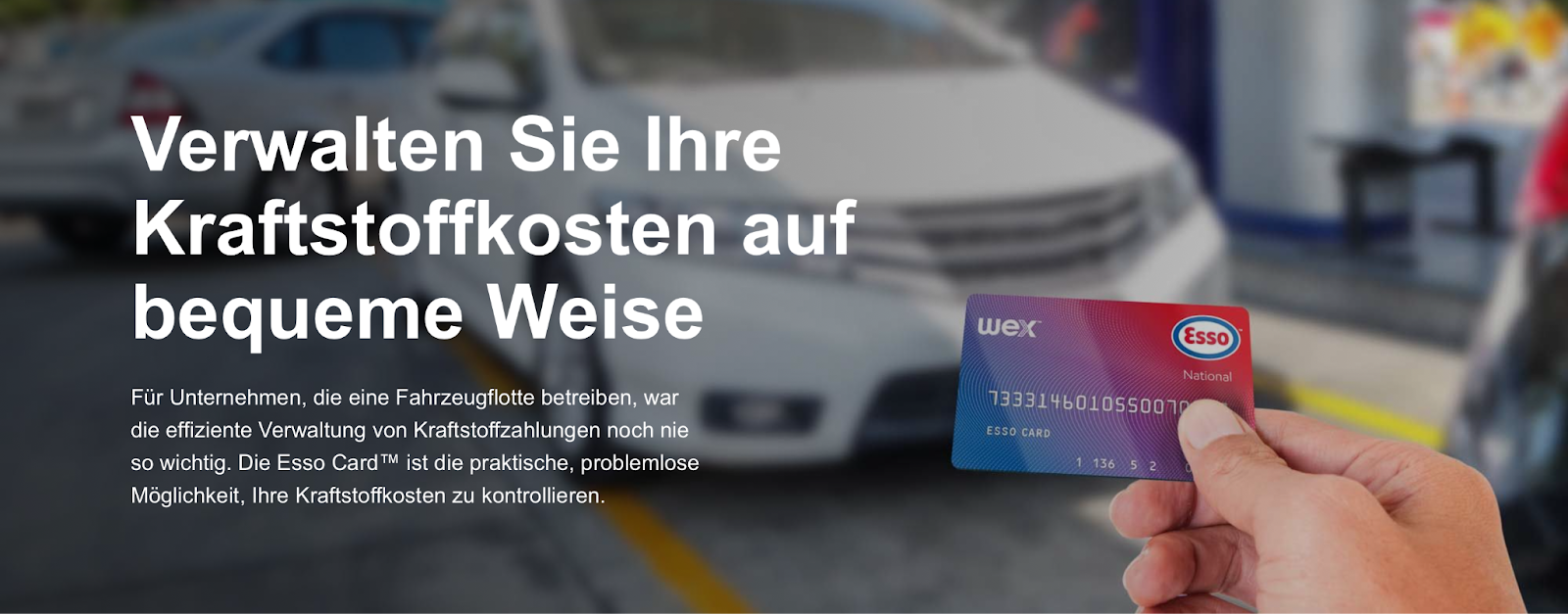Die Esso Card bietet nicht nur eine intuitive Bezahllösung für Ihre Fahrzeugflotte, sondern auch eine Echtzeit-Überwachung sämtlicher Kosten, automatisch generierte Online-Berichte und attraktive Tankrabatte. Übrigens: Neben Esso-Tankstellen können Sie Ihre Esso Card auch bei anderen Marken, etwa der Shell, nutzen.