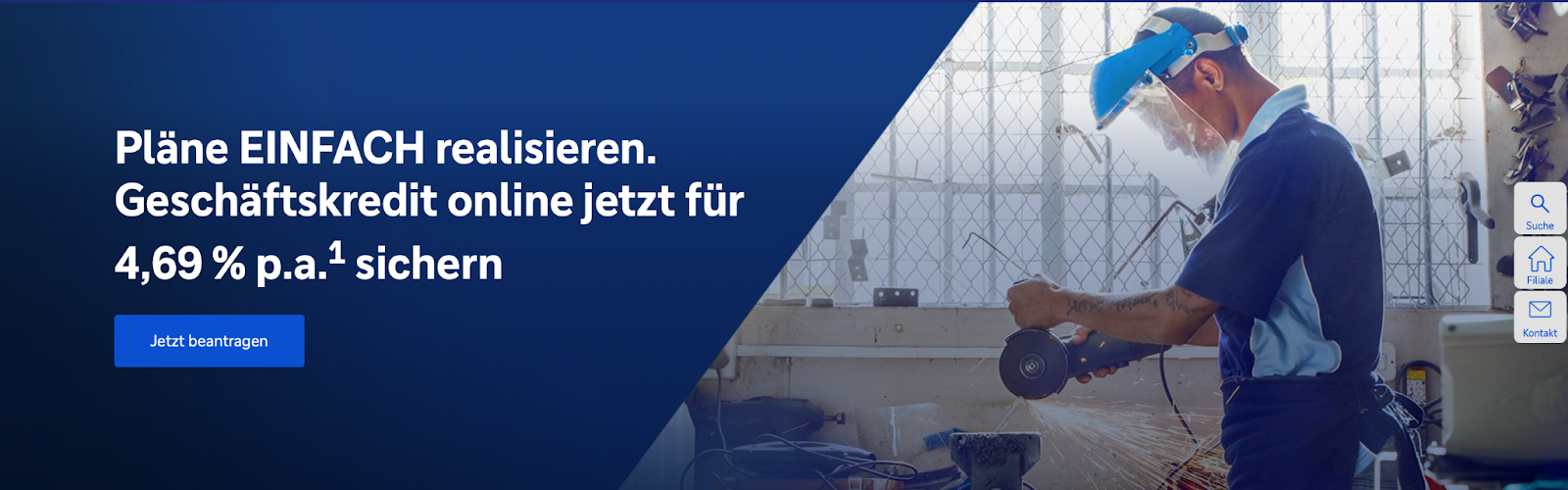 Die Geschäftskredite der Deutschen Bank bieten Ihnen noch mehr Flexibilität für langfristige Investitionen in Ihr Unternehmen. Das “BusinessDarlehen” kann bis zu 250.000€ und bis zu 180 Monate Laufzeit umfassen. Damit ist es das ideale Werkzeug, um Ihr Unternehmen langfristig zu skalieren. Der feste Sollzinssatz für das Business-Darlehen der Deutschen Bank beträgt 4,69 %. Beachten Sie, dass Sie den kompletten Kreditrahmen nur bei entsprechender Bonität ausschöpfen können.