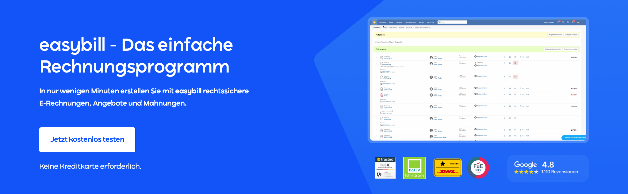 easybill versteht sich als einfaches Rechnungsprogramm für Selbstständige und Kleinunternehmen, das den Umstieg auf E-Rechnungen vereinfachen soll.