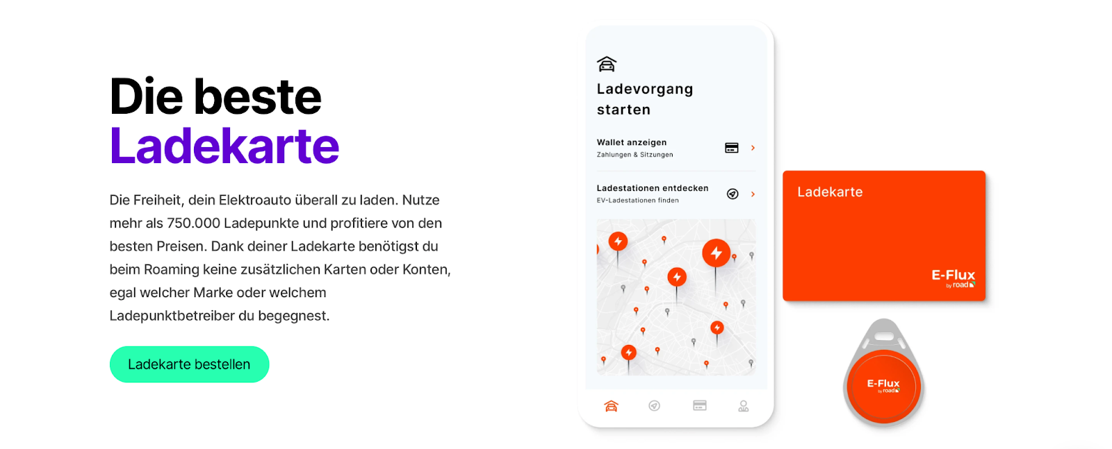 E-Flux by Road ordnet sich im Tankkarten Vergleich knapp hinter der EnBW mobility+ App ein. E-Flux bietet Geschäftskunden Zugang zu über 750.000 Ladepunkten in ganz Europa. Viellader sparen sich im Komfort-Abo zudem die Startgebühr bei jedem Ladevorgang und sogenannte Roaming-Gebühren. Diese fallen normalerweise an, wenn Kunden eine Ladesäule nutzen, die nicht von E-Flux betrieben wird.