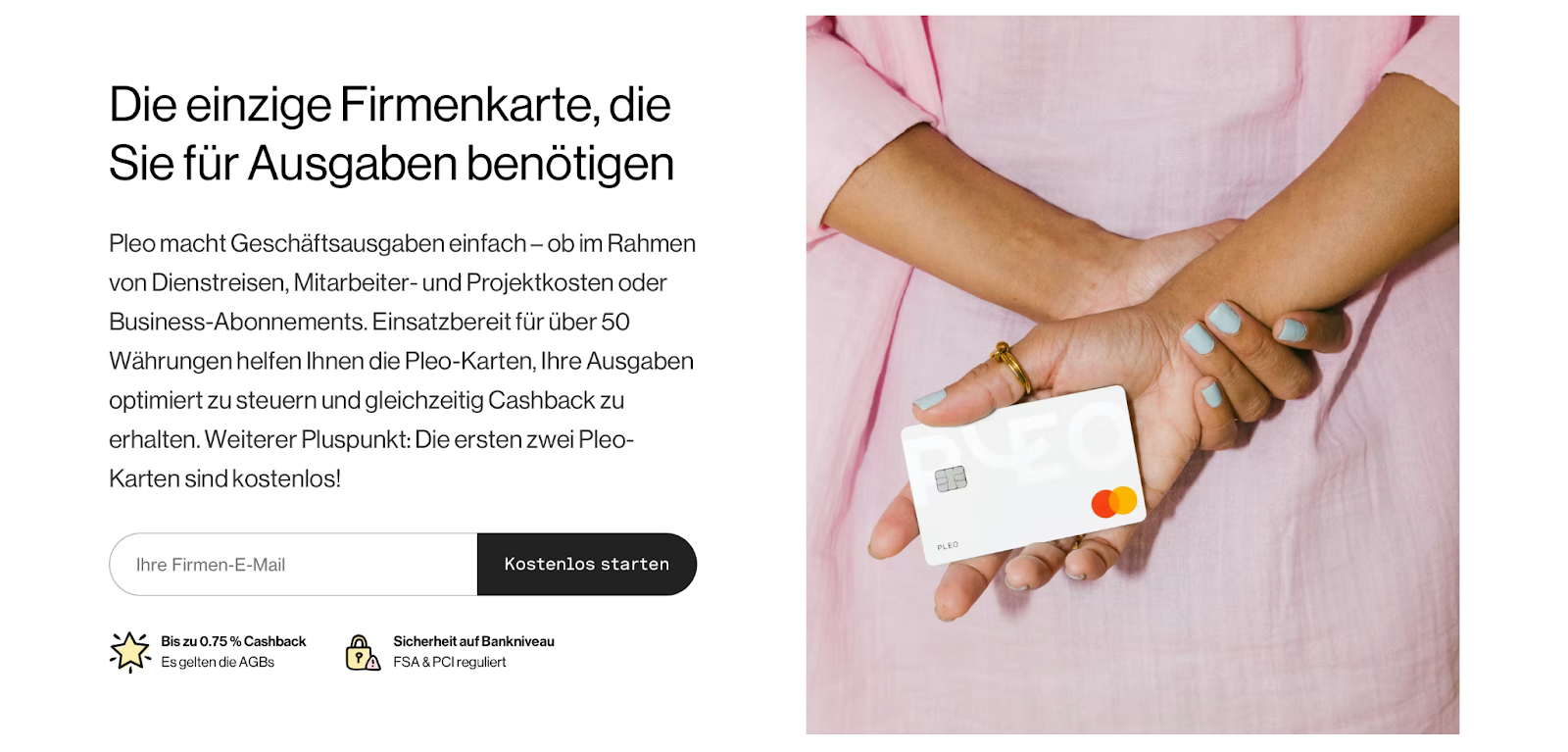 Pleo Firmenkarten erlauben Ihnen sowohl beim Tanken als auch bei allen anderen Transaktionen Zeit und Geld zu sparen. Ob Tanken, Dienstreise, Projektkosten oder Business-Abonnements, Ihre Pleo Karte kümmert sich darum. Starten Sie noch heute mit der einzigen Firmenkarte durch, die Sie für Ihre Ausgaben benötigen. Die ersten zwei Karten gibt es kostenlos.