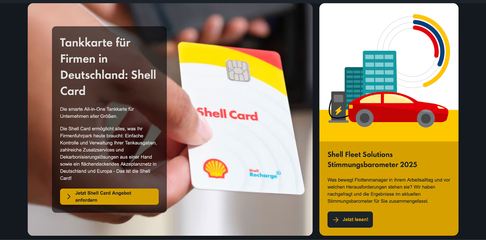 Die Shell ist selbstverständlich auch mit von der Partie und bewirbt mit der Shell Card das Pendant zur Esso Card. Diese erlaubt vom bargeldlosen Tanken an tausenden Tankstellen in Deutschland bis zur Sammlung von Kassenbelegen all das, was das Buchhalter-Herz begehrt. Rabatte auf Kraftstoff gibt es bei der Shell auch. International Geschäftsreisende können die Shell Card zusätzlich nutzen, um Mautgebühren abrechnen zu lassen.