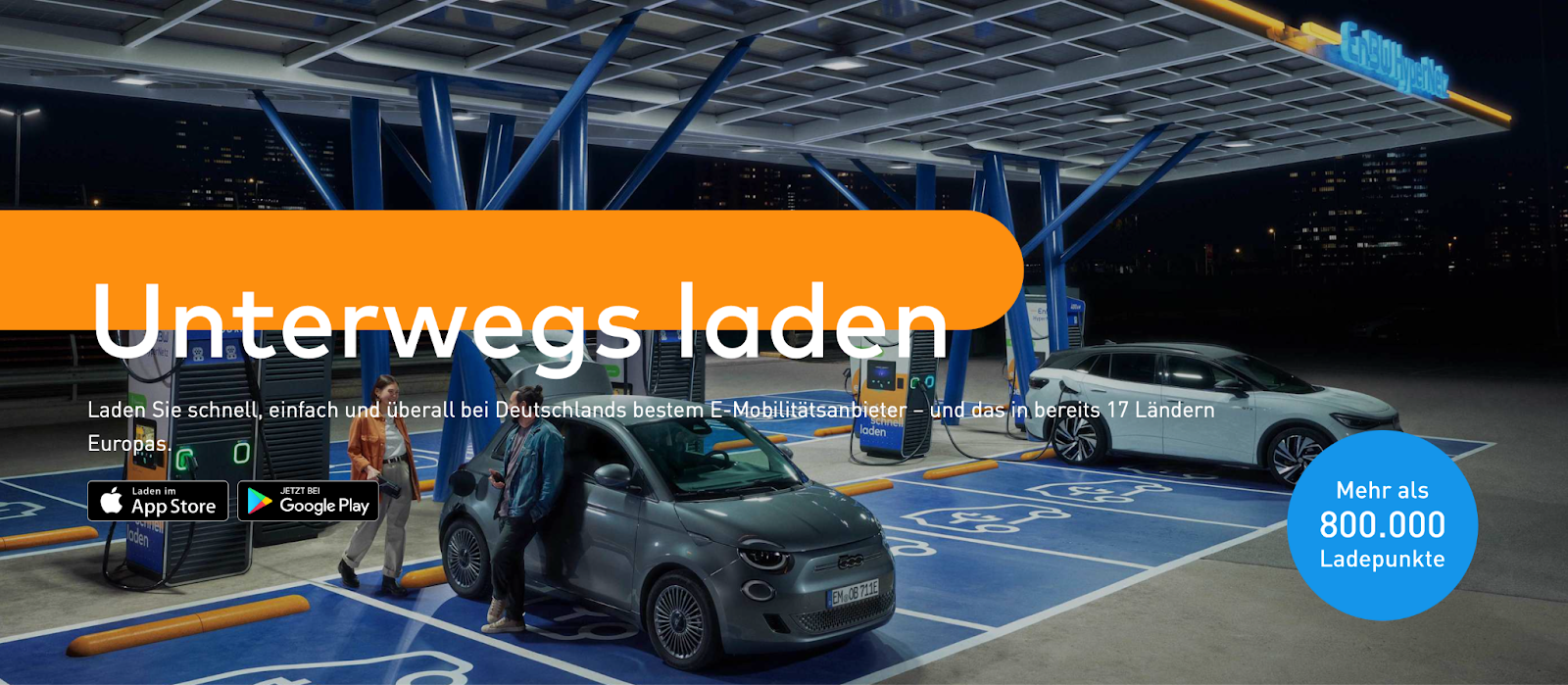 Die Ladesäulen der EnBW sind in Deutschland längst allgegenwärtig. Mit der Ladekarte der EnBW erhalten Sie aber nicht nur Zugang zu diesen, sondern insgesamt mehr als 800.000 Ladepunkten in 17 Ländern Europas. Sämtliche Ladepunkte, Kosten und weitere Details finden Sie in der intuitiven EnBW mobility+ App. Mit EnBW bleiben Ihre Elektroautos nie auf der Strecke und laden dazu noch besonders schnell und umweltfreundlich mit 100 % Ökostrom.