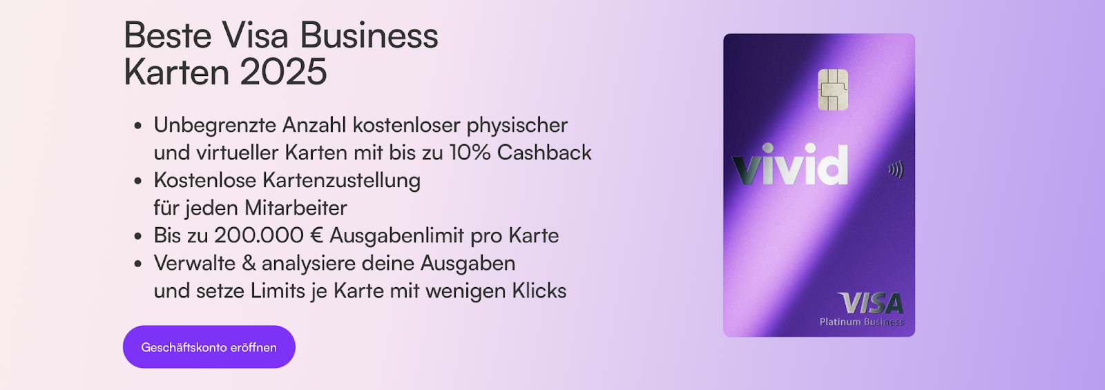 Für wen Vivid geeignet ist: Große Unternehmen, die sehr viele virtuelle Firmenkarten ausstellen wollen