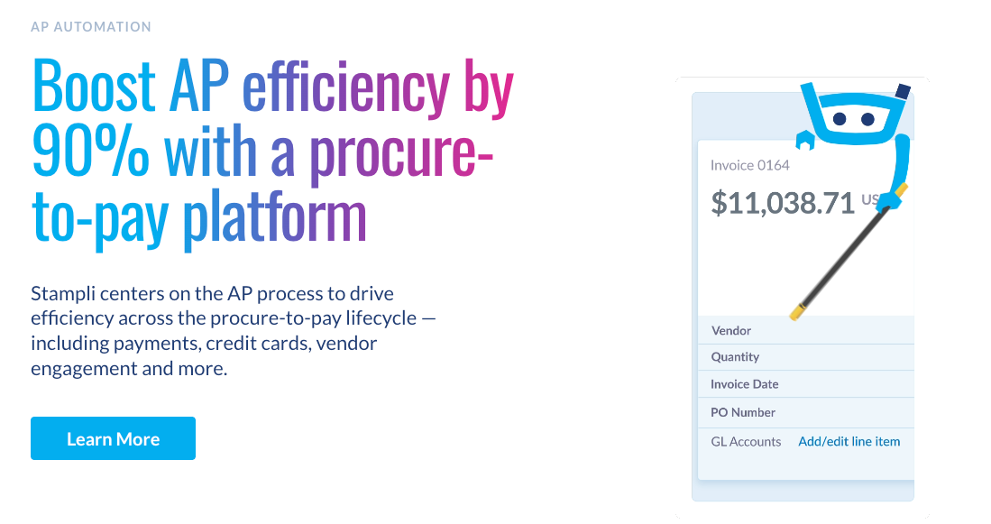 Stampli brings collaboration into AP. Its AI-powered ‘Billy the Bot’ automatically captures invoice data, whilst its chat-based interface makes it easy for finance, procurement and department heads to approve and discuss invoices in one place.