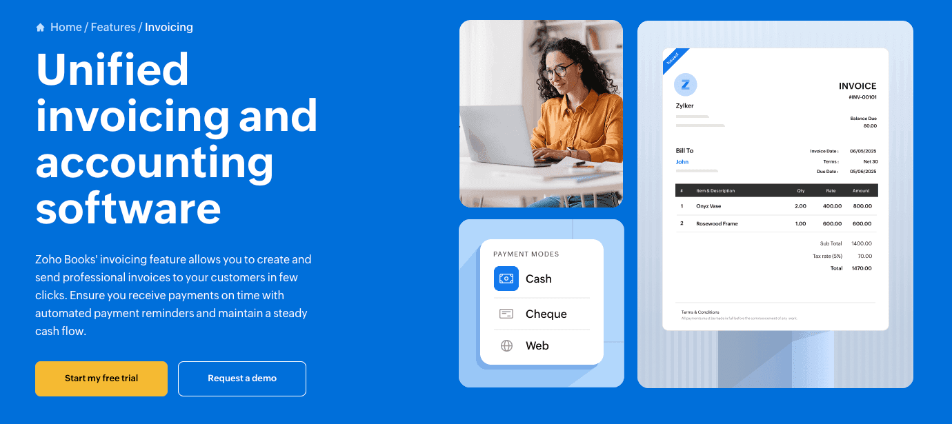 Zoho Invoice keeps things simple with an intuitive platform for creating, sending and tracking invoices. You can automate payment reminders, accept online payments and generate detailed reports – all without needing a full accounting team.