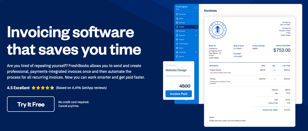 FreshBooks is loved by freelancers and small businesses for its simplicity. You can create professional-looking invoices in seconds, accept online payments and see exactly when a client has opened your invoice.